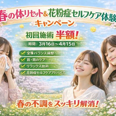期間限定ですが「春の体リセット&花粉症セルフケア体験」キャンペーンを開催します。